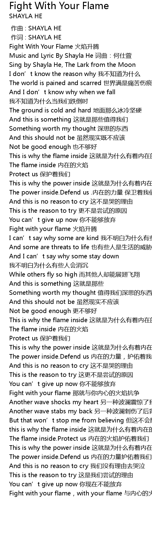 | [02:20.679] | This is why the flame inside zhè jiù shì wèi shí me yǒu zhe nèi zài de huǒ yàn |