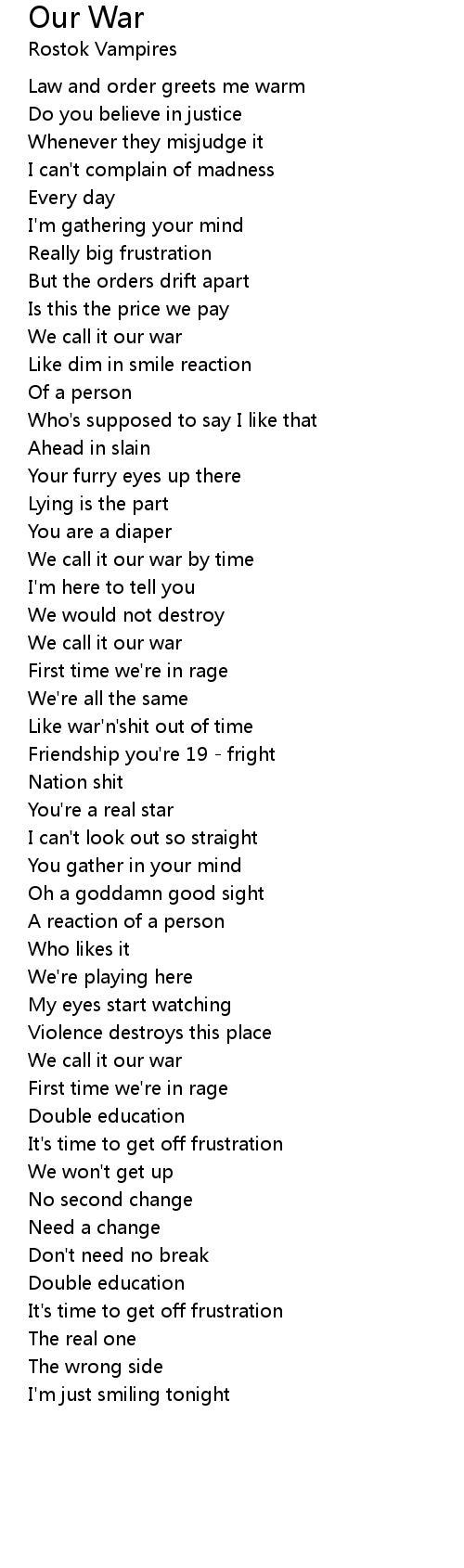 Like war'n'shit out of time |