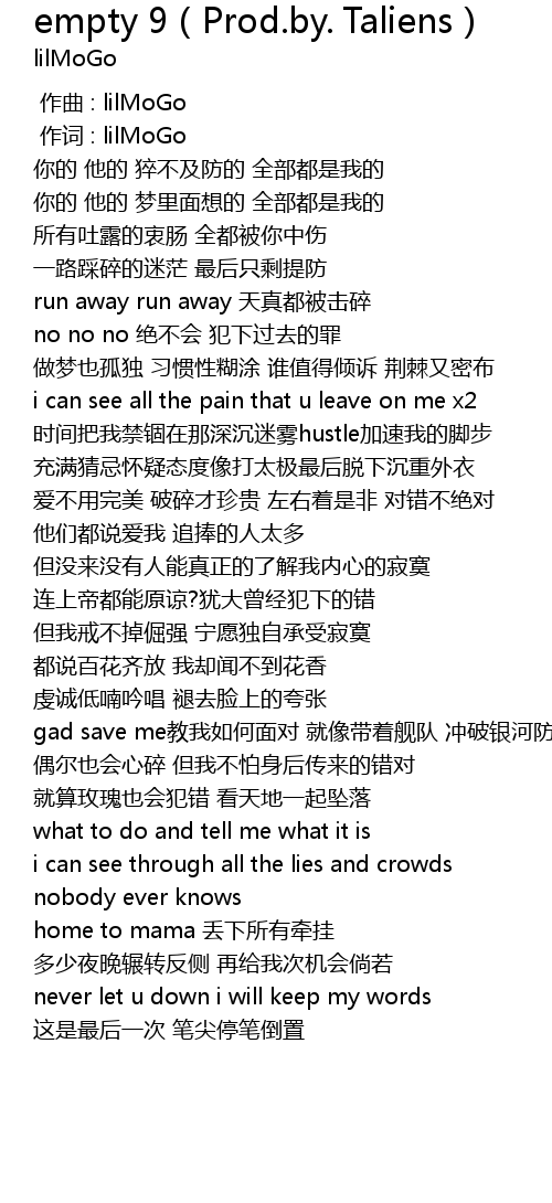 | [00:01.000] | 作词 : lilMoGo |