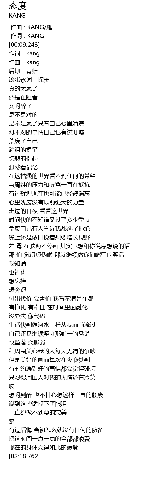 | [00:01.000] | 作词 : KANG |
