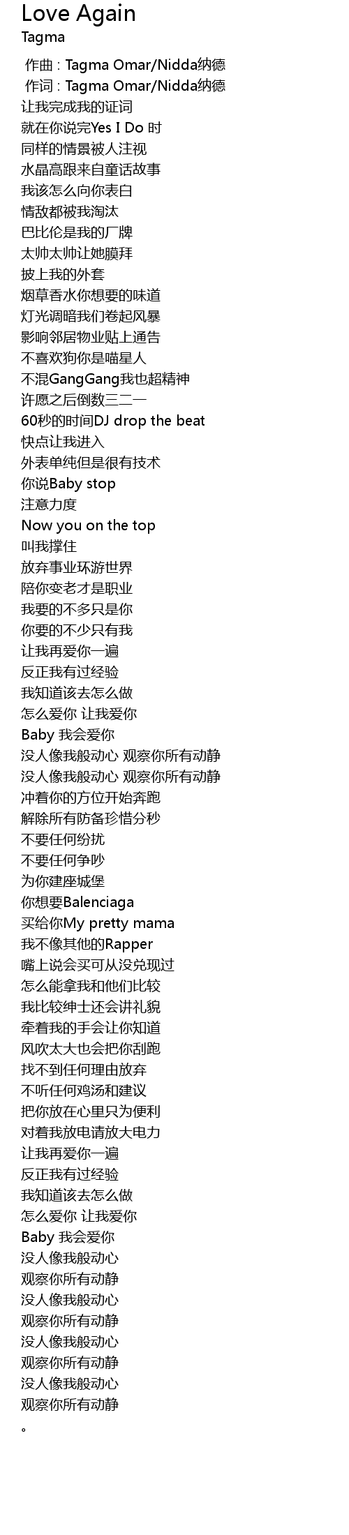 | [00:01.000] | 作词 : Tagma Omar/Nidda纳德 |