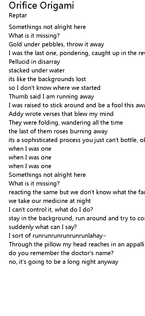 Orifice Origami Lyrics