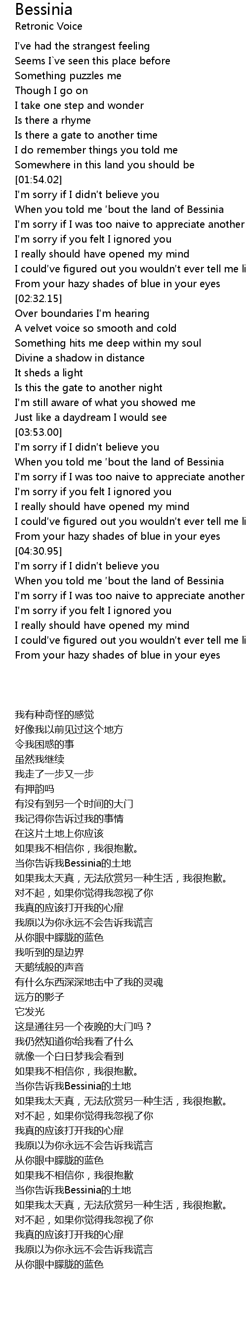 | [03:59.98] | When you told me bout the land of Bessinia |