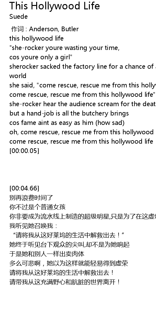 | [01:14.49] | come rescue, rescue me from this hollywood life" |