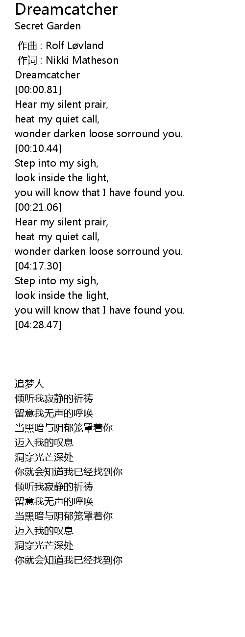 | [00:00.38] | Dreamcatcher |