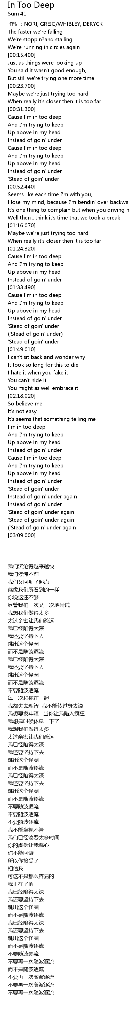 | [00:41.020] | Cause I' m in too deep |