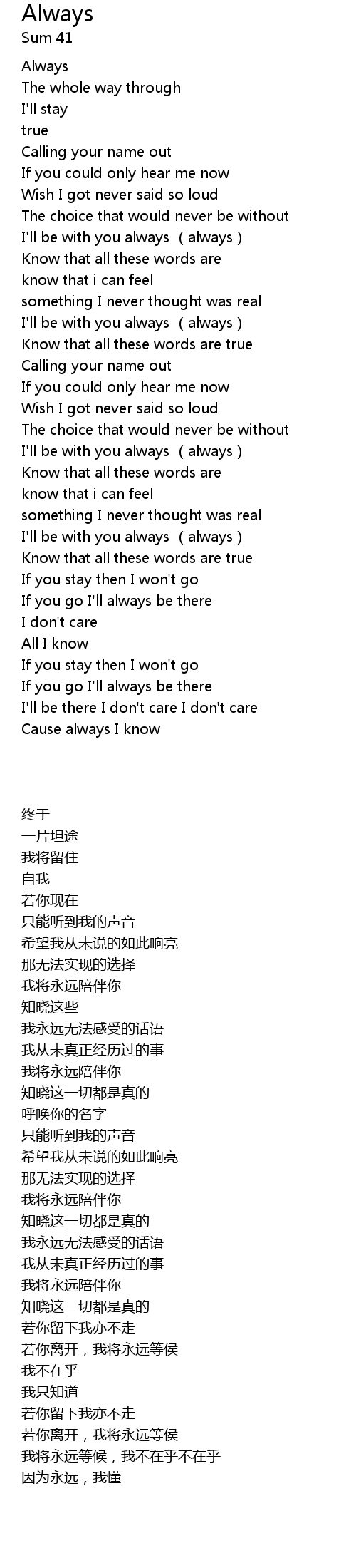 | [02:57.820] | I' ll be there I don' t care I don' t care |