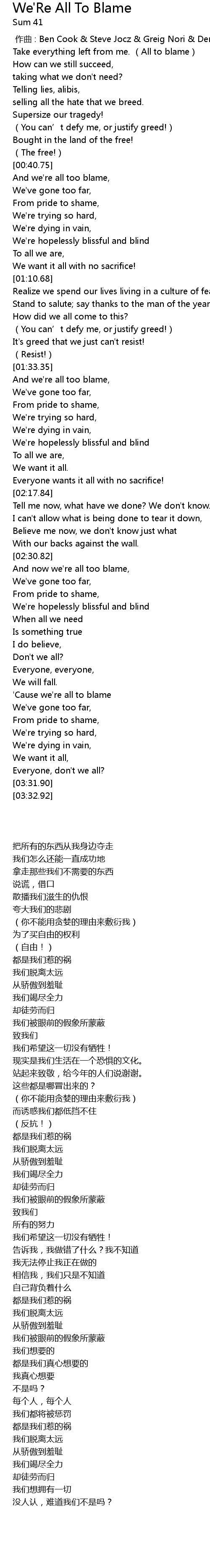| [03:03.98] | ' Cause we' re all to blame |