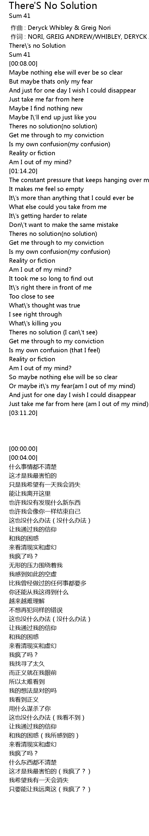 | [00:00.00] | There' s no Solution |