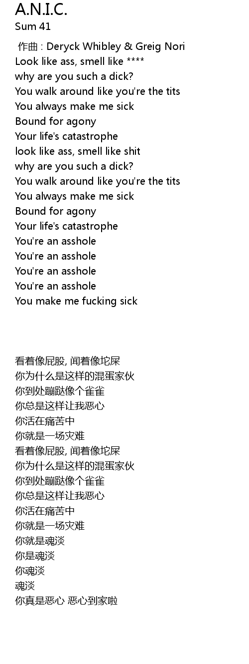 | [00:00.00] | 作曲 : Deryck Whibley & Greig Nori |
