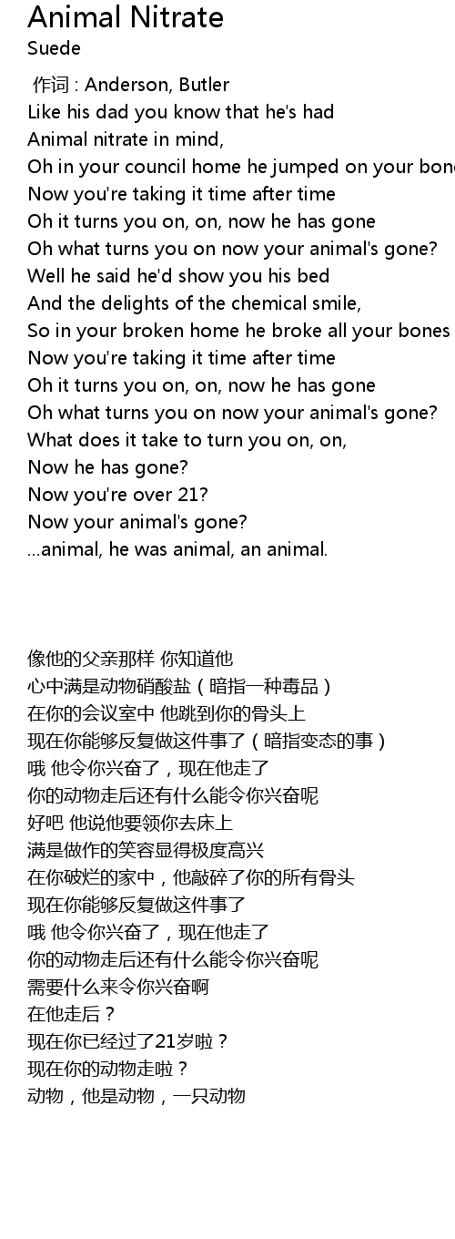 | [00:29.560] | Animal nitrate in mind, |