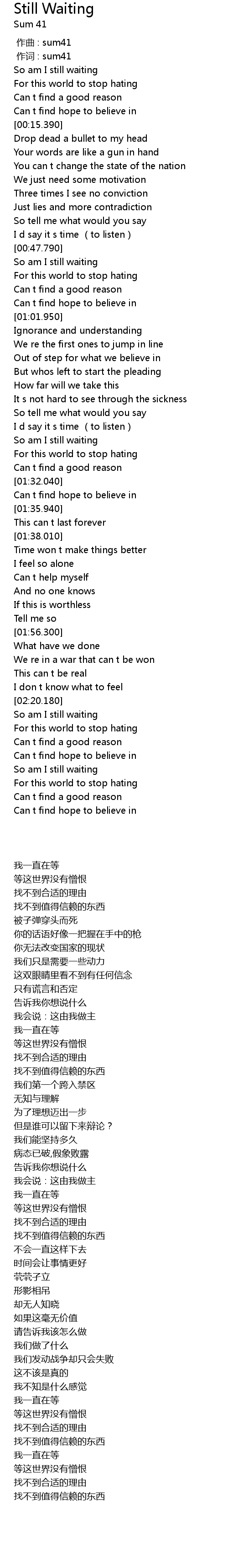 | [00:01.00] | 作词 : sum41 |