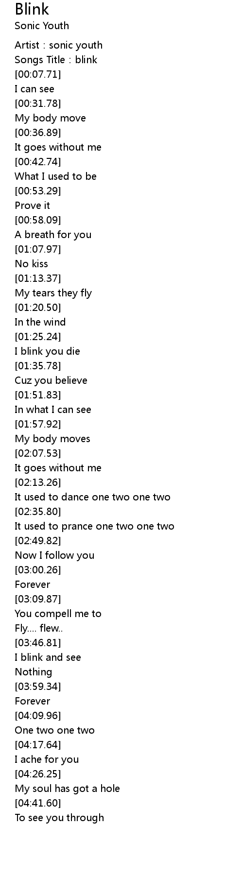 | [00:02.36] | Artist: sonic youth |