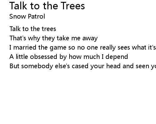 | Song | Talk to the Trees |