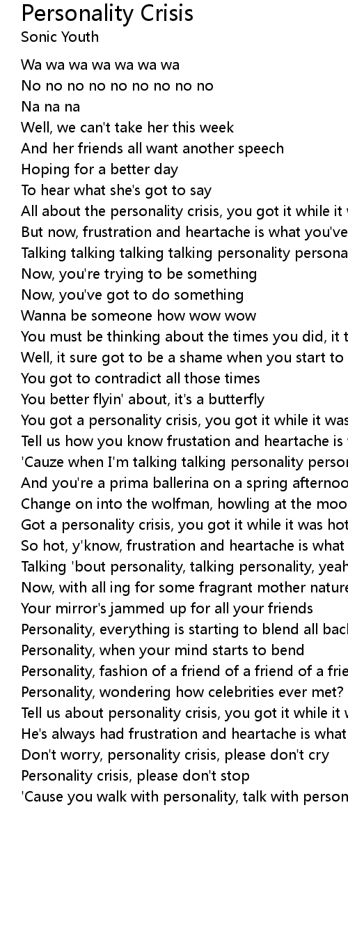 Personality crisis, please don't stop |