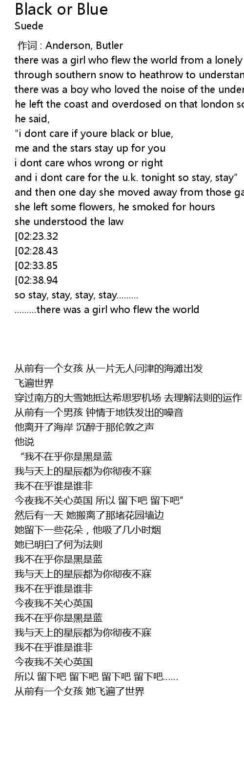 | [02:45.33][02:23.32] | i dont care if youre black or blue |