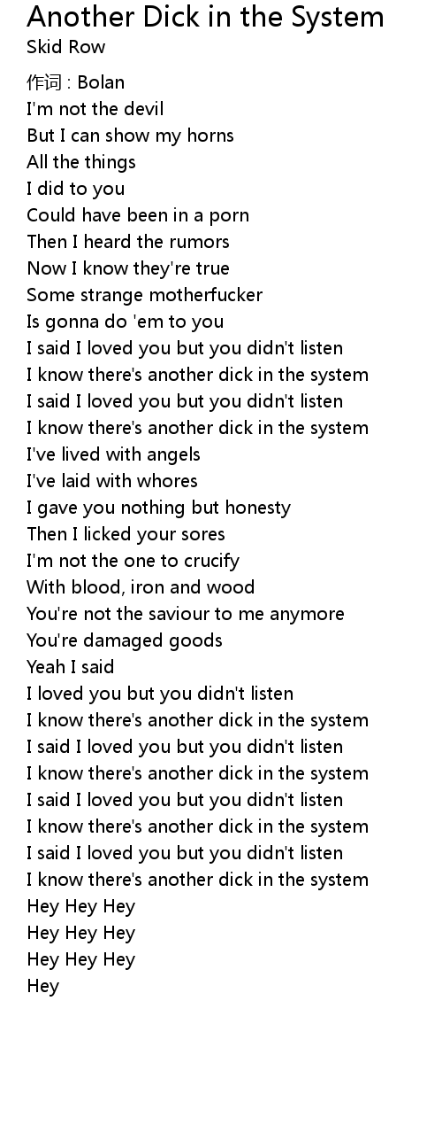| I know there' s another dick in the system | |