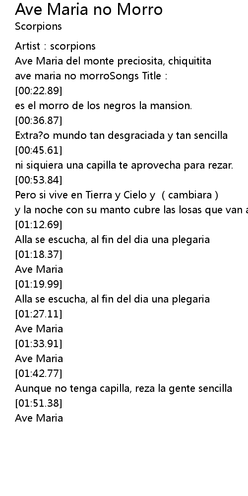 | [00:25.43] | ave maria no morroSongs Title: |