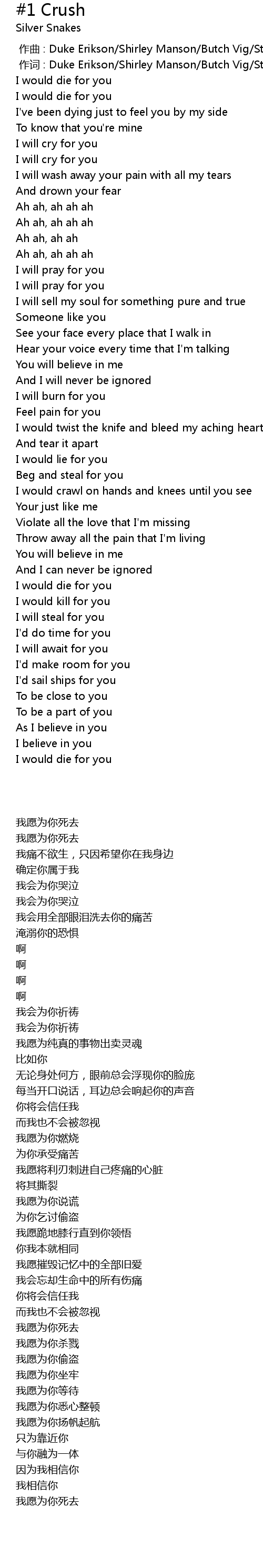 | [00:01.000] | zuo ci : Duke Erikson Shirley Manson Butch Vig Steve Marker |