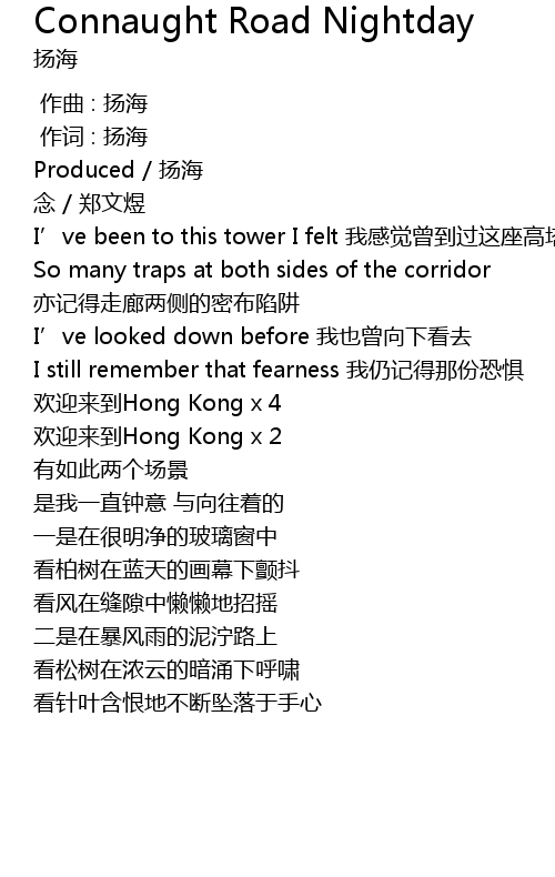 | [01:59.490] | huān yíng lái dào Hong Kong x 2 |