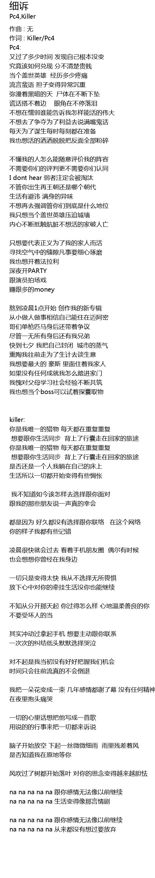 | 作词 : Killer/Pc4 | |