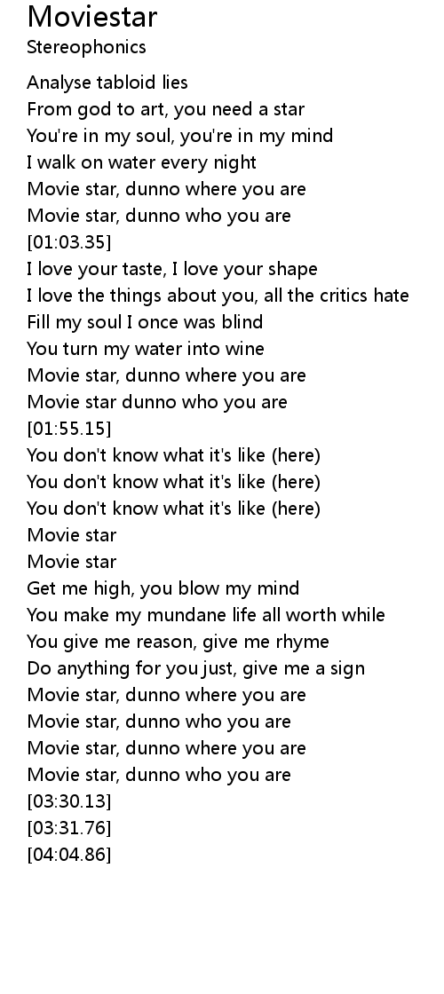 Movie star, dunno where you are |