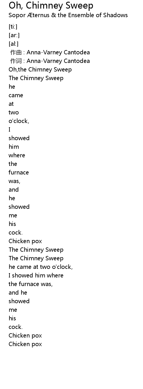 | [00:00.20] | 作词 : Anna-Varney Cantodea |