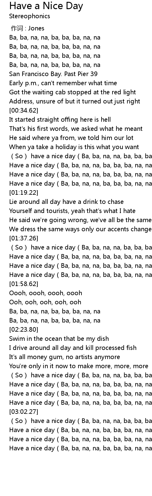| [01:02.86] | (So) have a nice day(Ba, ba, na, na, ba, ba, ba, na, na) |