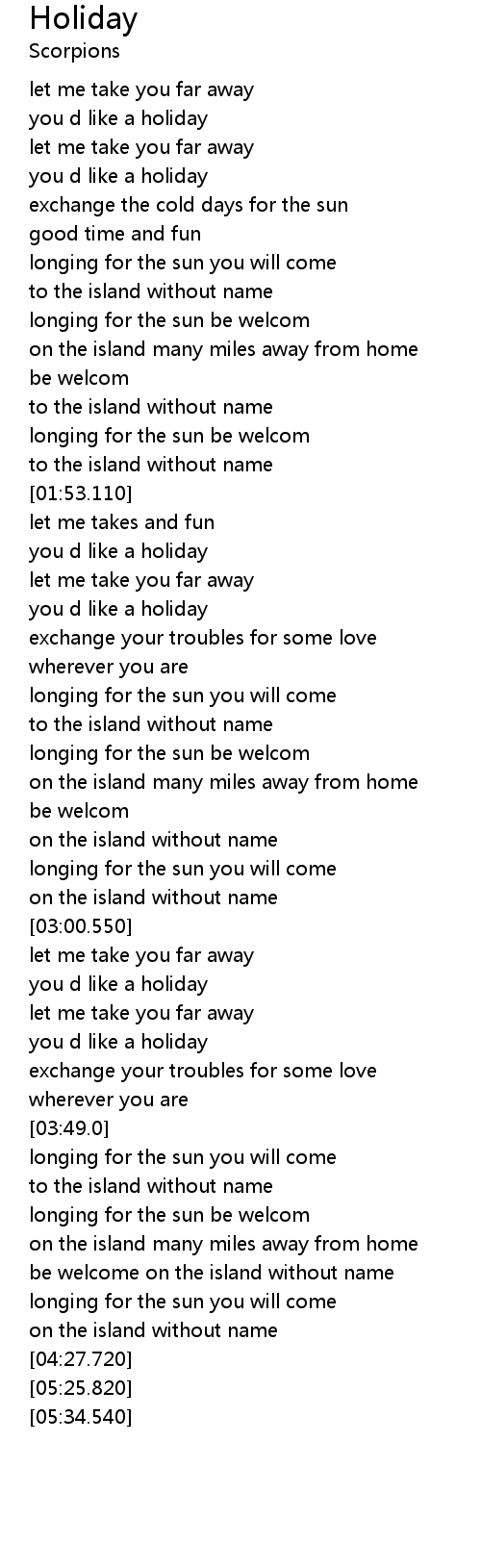 | [00:53.210] | you d like a holiday |