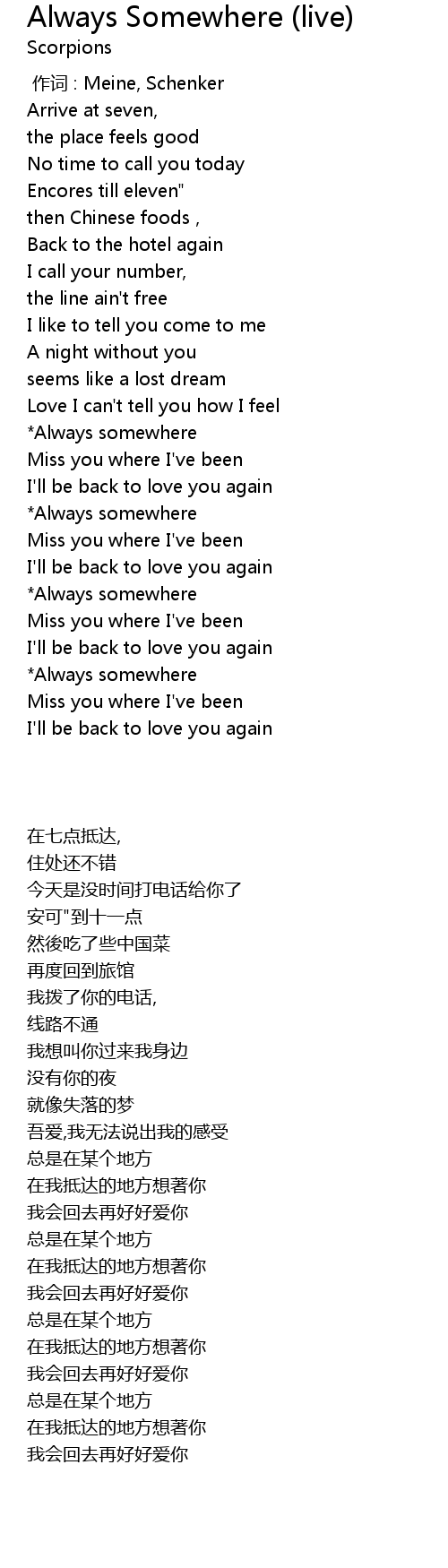 | [02:12.948] | Always somewhere |