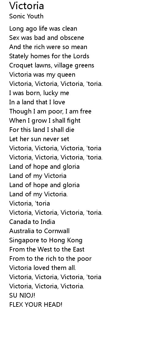Victoria, Victoria, Victoria, 'toria. |