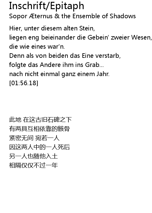| Song | Inschrift/Epitaph |