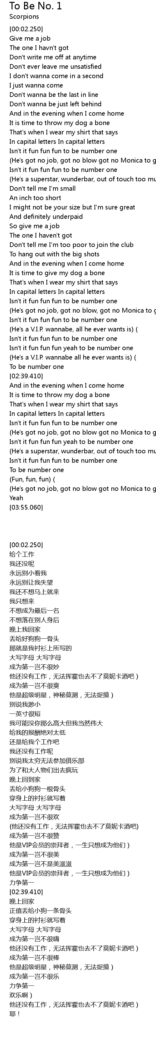 | [02:22.530] | Isn't it fun fun fun yeah to be number one |
