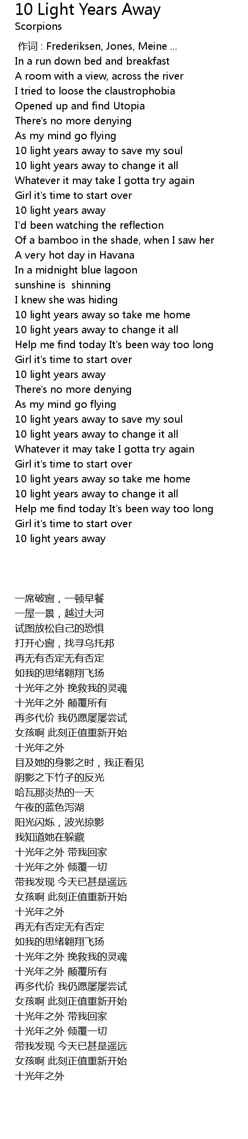 | [02:46.26] | 10 light years away to save my soul |