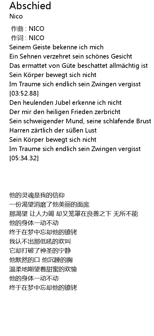 | [03:46.24] | Im Traume sich endlich sein Zwingen vergisst |