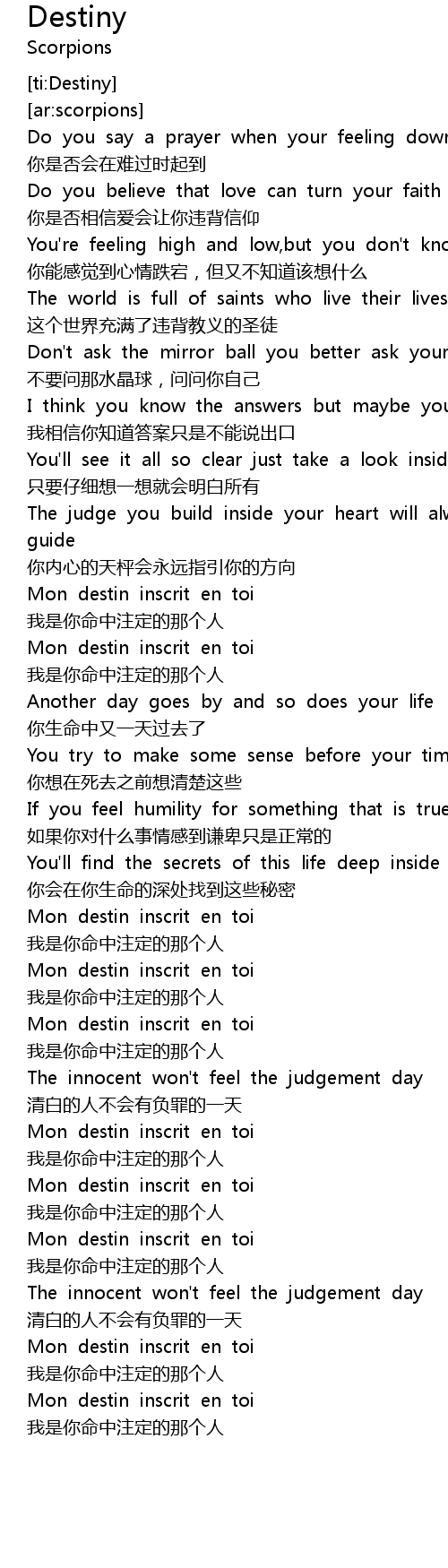 | [01:57.73] | The innocent won' t feel the judgement day |