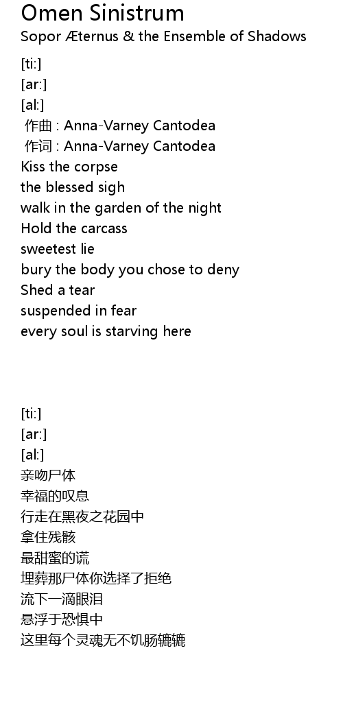 | [00:01.00] | 作词 : Anna-Varney Cantodea |
