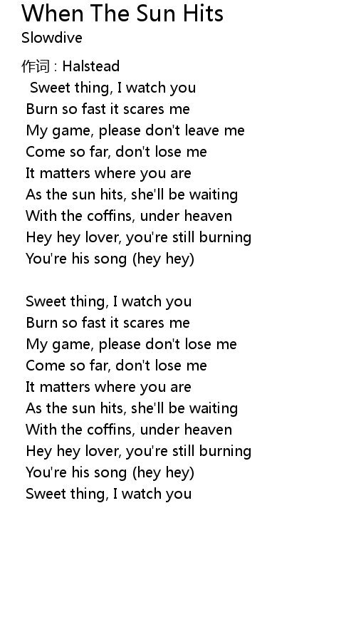| Song | When The Sun Hits |