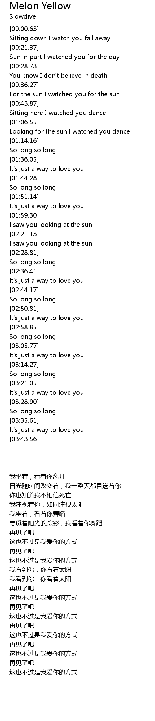 | [00:39.18] | For the sun I watched you for the sun |