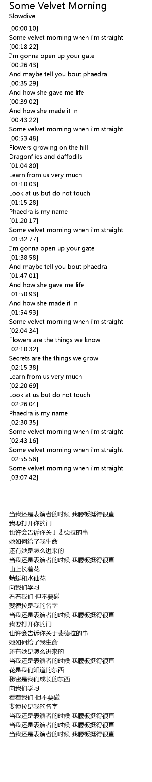 | [03:00.54] | Some velvet morning when i'm straight |