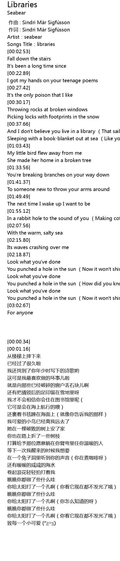 | [00:48.88] | And I don't believe you live in a library (That sails the sea) |