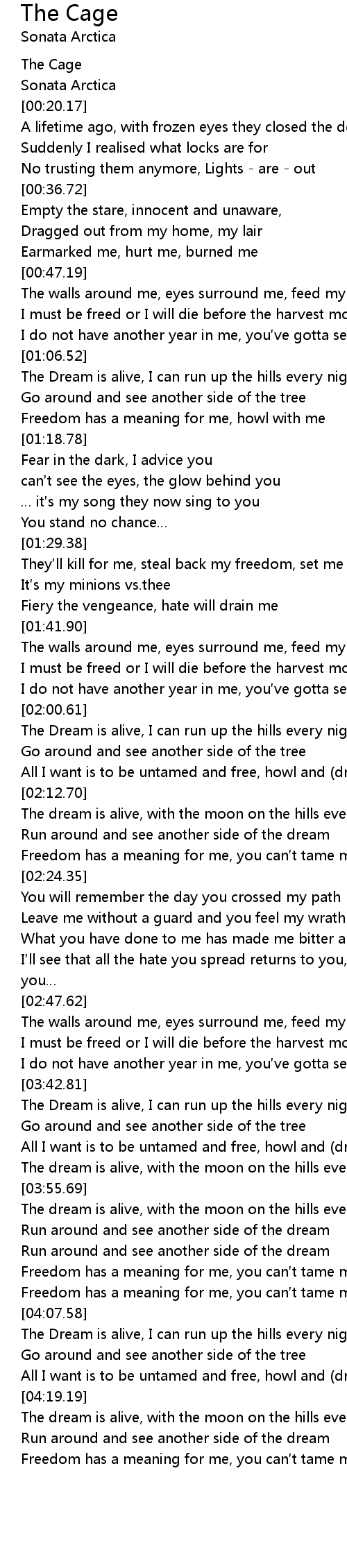 | [04:15.00] | All I want is to be untamed and free, howl and dream |