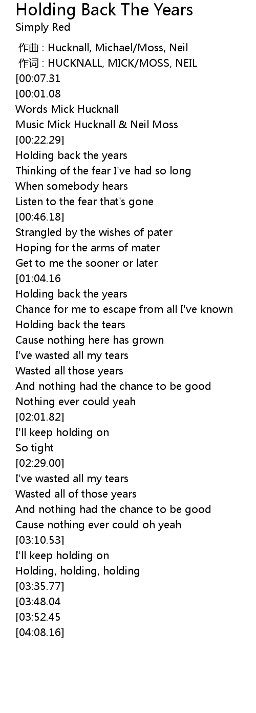 | [01:16.39] | Holding back the years |