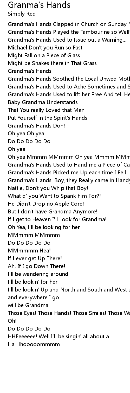 Grandma's Hands Used to Hand me a Piece of Candy |