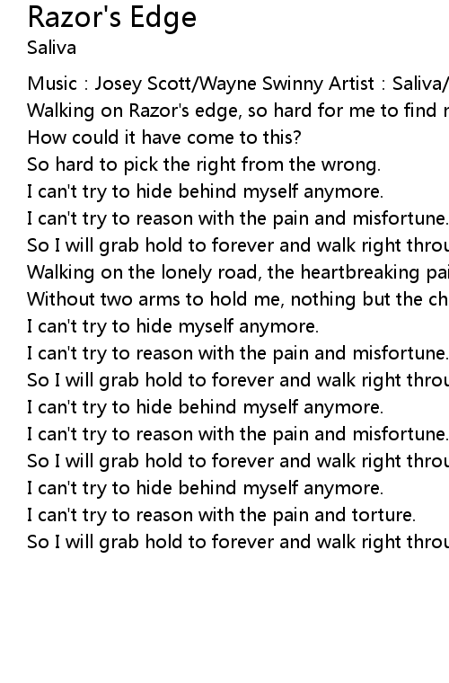 | Walking on Razor's edge, so hard for me to find my way home. | |