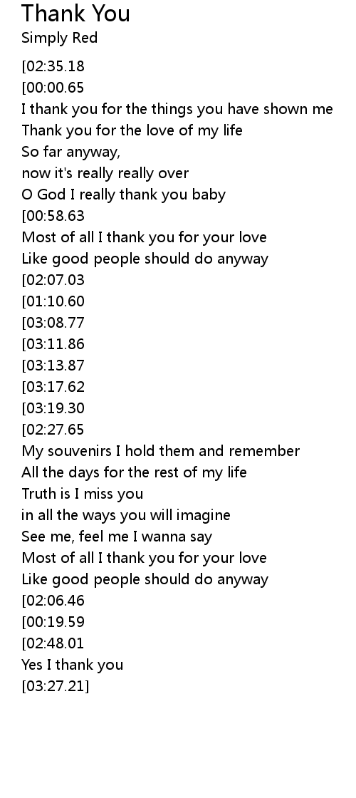 Most of all I thank you for your love |