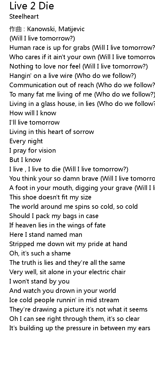 | A foot in your mouth, digging your grave Will I live tomorrow? | |