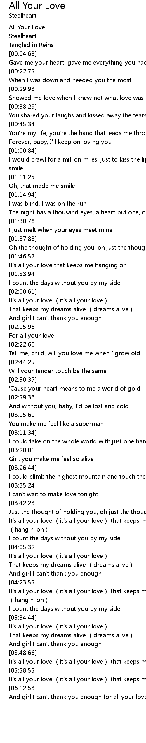 | [06:06.29] | It' s all your love it' s all your love that keeps my dreams alive |