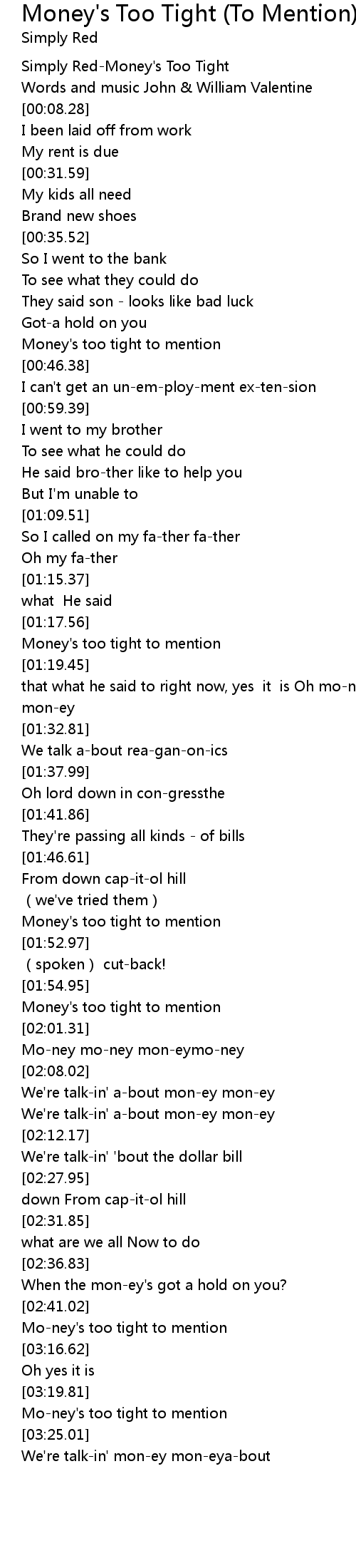| [00:01.42] | Simply Red-Money's Too Tight |
