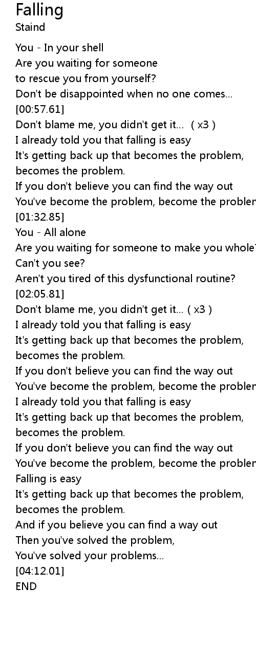 | [01:12.09] | It' s getting back up that becomes the problem, |